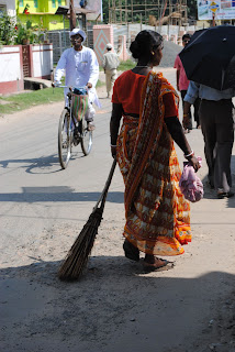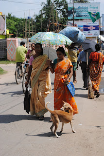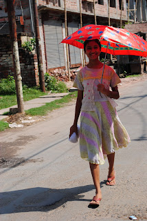 Um fünf sollte es losgehen, um viertel vor sechs, war ich wirklich aufgelöst, von erwarteten 400 Gästen tummelten sich um die 30 in dem kleinen Park, den wir in Deutschland eher als Spielplatz bezeichnen würden. Das Fest begann trotzdem und zwar mit einem Willkommenstanz aufgeführt von den Kindern meines Tutorials, angeleitet von Gitali, unserer Tanzlehrerin. Danach folgten Reden über Reden, sowie Ehrungen der Chief Guests (unter anderem Willy und Marie-Louise aus Belgien) und es wurden jede Menge Bücher, Blumen und, als Sinnbild für das, was nachher geschehen sollte, für alle Volunteers (auch die Angestellten werden hier als Freiwillige bezeichnet, da der Lohn so gering ist, dass es als Freiwilligenarbeit gelten kann), lustig bedruckte, Regenschirme als Dank für die Arbeit, überreicht. Auch die Schüler, mit der höchsten Anwesenheit oder dem besten Benehmen während des Unterrichts wurden geehert und bekamen Geschenke.
